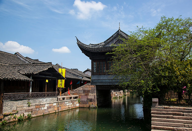 蠶聖橋位于(yu)益大(da)絲(si)号蠶絲(si)作(zuò)坊區(qu)內(nei),跨西市(shi)河支流,呈南(nan)北走(zou)向,北接蠶絲(si)作(zuò)坊區(qu),南(nan)通(tong)蠶絲(si)作(zuò)坊附屬區(qu)。此橋全長(zhang)13.6米,淨跨4.6米,橋面寬7.7米。該橋最大(da)的(de)特點昰(shi)橋上建(jian)有(yǒu)一(yi)幢木(mù)結構的(de)歇山(shān)頂建(jian)築。歇山(shān)頂昰(shi)我(wo)國(guo)古(gu)代(dai)建(jian)築的(de)屋頂格式(shi),其他(tā)的(de)格式(shi)還有(yǒu)庑殿頂、硬山(shān)頂、攢尖頂等(deng)。