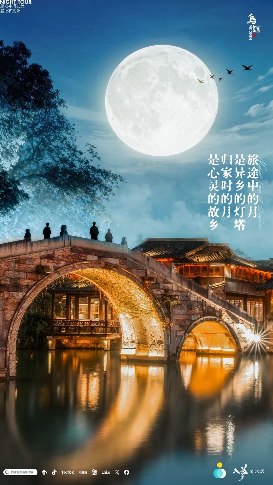國(guo)慶邂逅中(zhong)秋,烏鎮今夜别樣璀璨!當暮色漫過(guo)水鄉(xiāng),不妨提一(yi)盞燈,随人(ren)流走(zou)過(guo)祈福的(de)石橋,去“昭明月集(ji)”淘選一(yi)件心儀好物(wù),去水劇場(chang)追漫天泡泡,在(zai)莊重(zhong)的(de)祭月大(da)典中(zhong)分(fēn)一(yi)塊團(tuán)圓月餅,最後(hou)在(zai)靈(ling)水居光影秀中(zhong)沉浸式(shi)體(ti)驗(yàn)江(jiang)南(nan)中(zhong)秋夜的(de)詩意與浪漫。