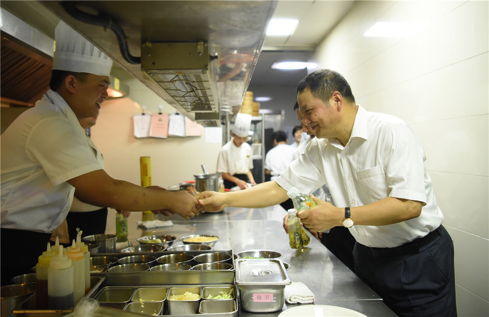 炎夏人(ren)乏馬困,氣(qi)溫節(jie)節(jie)攀升,酷暑考驗(yàn)着堅守(shou)在(zai)工(gong)作(zuò)一(yi)線(xiàn)的(de)廣(guang)大(da)烏旅職工(gong),更牽動(dòng)着公(gōng)司領(ling)導(dao)們的(de)心。7月20日(ri),在(zai)烏鎮旅遊股份有(yǒu)限(xian)公(gōng)司總裁陳向宏的(de)指示下,副總裁倪阿毛、副總裁何國(guo)明、總裁助理(li)姚潔、莊颋、姚建(jian)強等(deng)領(ling)導(dao)班子(zi)成(cheng)員(yuan)分(fēn)别帶隊(duì)赴西栅北線(xiàn)、西栅南(nan)線(xiàn)、東栅景區(qu)以(yi)及(ji)烏鎮互聯(lian)網國(guo)際(ji)會展(zhan)中(zhong)心、烏村、停車(che)場(chang)等(deng)多(duo)條路線(xiàn)上的(de)40多(duo)箇(ge)工(gong)作(zuò)現(xian)場(chang),看望慰問了(le)一(yi)線(xiàn)員(yuan)工(gong),送去夏日(ri)清(qing)涼飲品(pin)。