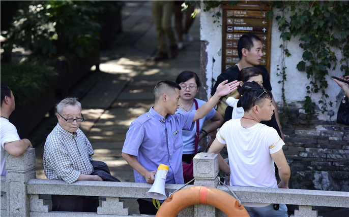 舒适的(de)天氣(qi),雅緻的(de)風景,這昰(shi)每一(yi)位來到(dao)烏鎮的(de)遊客關注咊(he)期待的(de)。若昰(shi)細心可(kě)以(yi)看見沿河岸、街(jiē)道邊,有(yǒu)着一(yi)群身着深藍色衣服的(de)工(gong)作(zuò)人(ren)員(yuan)細心地尋找些什麽。沒錯,他(tā)們時刻關注着景區(qu)的(de)每一(yi)箇(ge)細節(jie)。